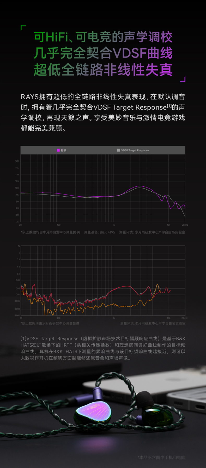 可HiFi、可电竞的声学调校,几乎完全契合VDSF曲线,超低全链路非线性失真。