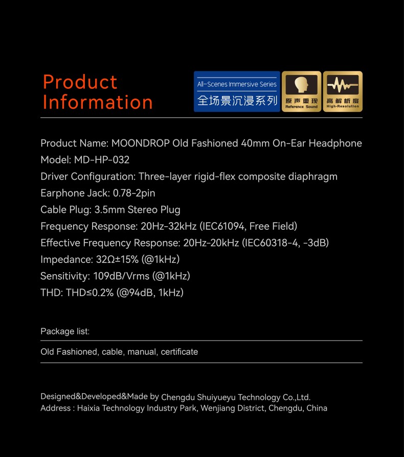 Product Name: MOONDROP Old Fashioned 40mm On-Ear Headphone